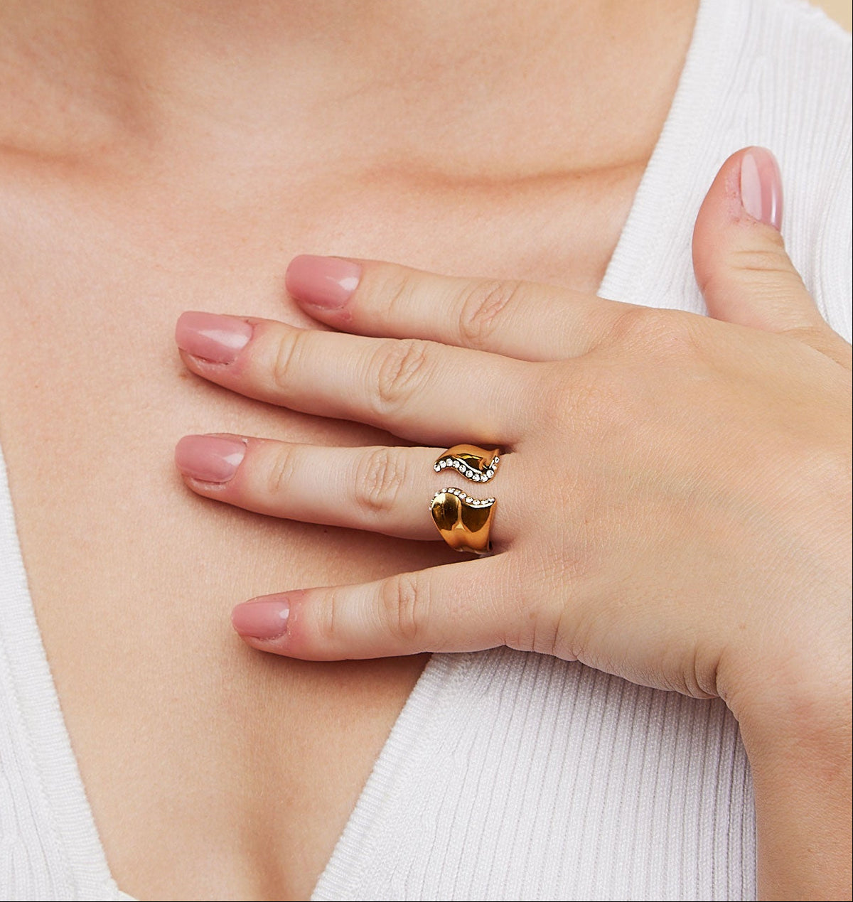 Perfect for stacking or wearing solo, this piece brings a soft, fluid shape with a touch of sparkle — versatile enough for everyday wear yet bold enough to stand out.